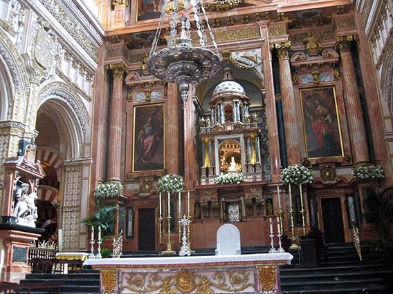 This actually happened before #2, but whatever. So, every Friday we take a day trip to another part of Spain. Next weekend we're going to be in Asturias, then we're going to Toledo, then Segovia. Córdoba is known for its beautiful religious architecture: the town has Arab, Jewish, and Christian influences present throughout. Perhaps the most famous image of Córdoba is La Mezquita (the mosque). Architects begun work on La Mezquita around 600 A.D. as a Christian Visigoth church, but it was bought by the founder of the Umayyad Emirate of Córdoba, a Muslim dynasty which ruled in the area for three centuries, and turned into a mosque. After 1492 it was turned into a church with a gothic cathedral placed in the middle of it: