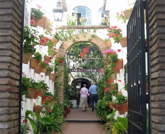 We spent the day walking around the city, which was completely without clouds (this is a trend in Spain, I've noticed) - don't worry, Mom, I managed to escape sunburn! Anyway, one thing that our professor pointed out was the tendency of residencies (homes, universities, restaurants, etc) to have an interior patio area before the main area, like so (this is a restaurant):